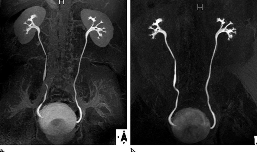 - состояние мочеточников по отдельности и в сравнении, их размеры, анатомическое положение, деформации, скорость продвижения по ним контрастного вещества;
