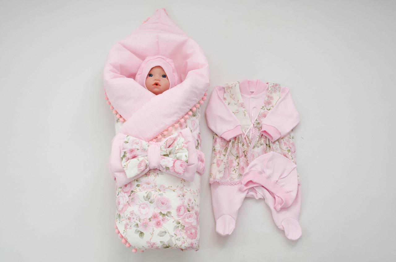Это минимальный комплект одежды на выписку из роддома, который может дополняться ещё какими-то вещами на усмотрение молодых родителей. Но это — обязательный стандарт, из которого можно убрать разве что комбинезон (если дело происходит жарким летом) и конверт (его часто заменяют обычным одеялом). Без всего остального обойтись будет трудно.