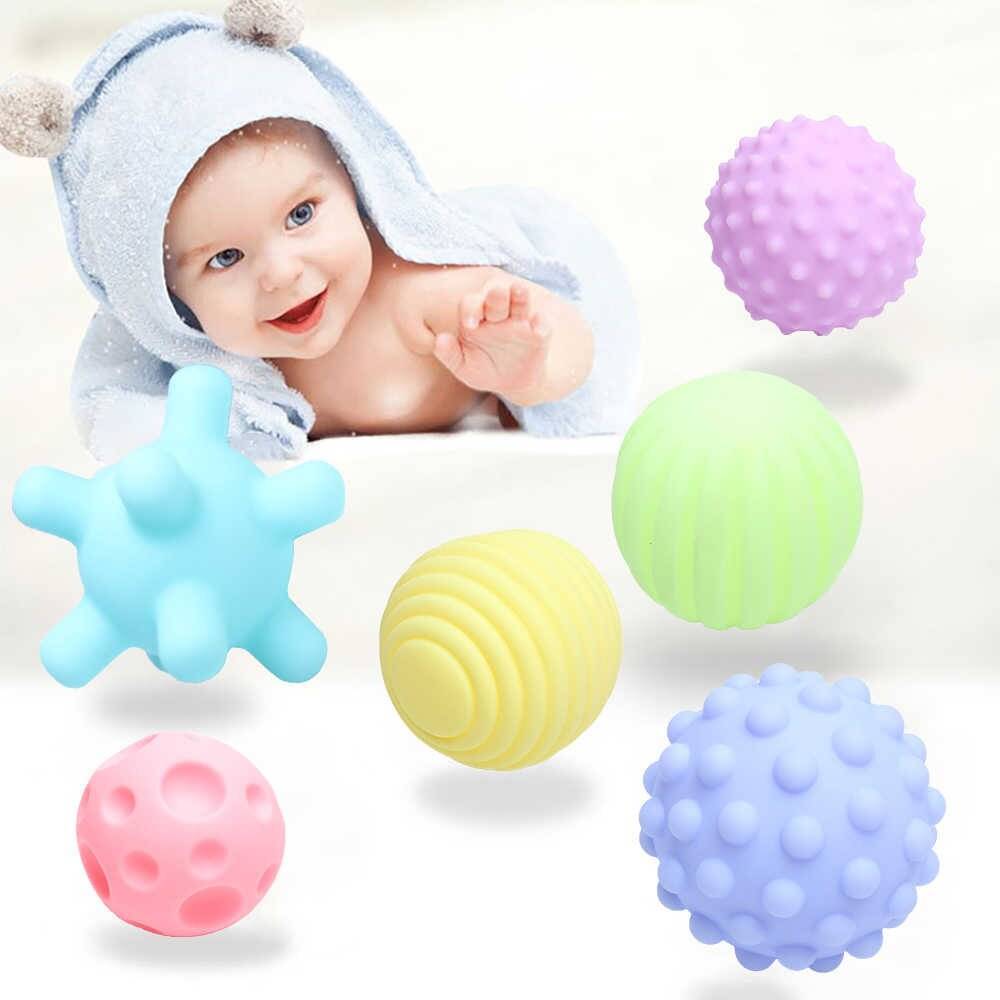 Можно использовать мячики разных размеров и изготовленные из отличных материалов, колючие, мягкие, пушистые, пластмассовые. В полгодика ребенку будет интересно их перебирать, разнообразные тактильные ощущения способствуют развитию речевых навыков. Можно дать потрогать малышу горячую воду и холодную, чтобы он понимал разницу. Главное, чтобы температура не превышала 50 градусов, – кожа младенца может пострадать. Или предложить потрогать кусочек льда. Объяснить, что это и посмотреть за реакцией ребенка. Детский возраст позволяет использовать окружающие предметы, многие из них будут удивлять и радовать малыша.