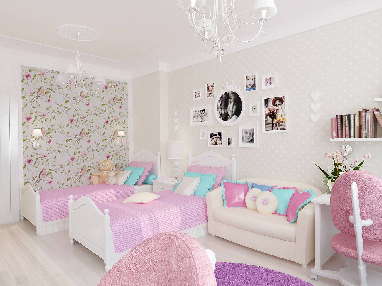 - для девочек с большой разницей в возрасте размещают отдельные кровати. Желательно разделить зону каждой принцессы цветом или перегородкой.