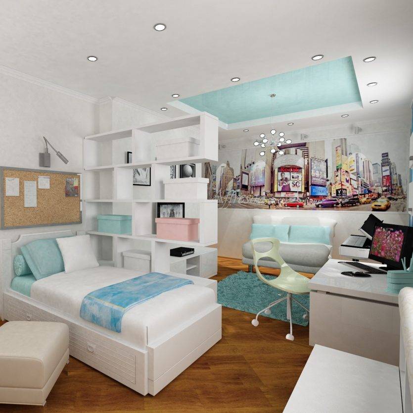 Дизайн подростковой комнаты в первую очередь должен быть направлен на определение расположения трех основных и необходимых зон: учебную, для сна и для досуга. Каким бы маленьким ни было помещение, но эти три так называемых кита должны обязательно присутствовать.