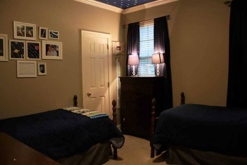 - Разделите пространство затемненной шторкой, которая позволит маленькому ребенку заснуть, пока старший учится,