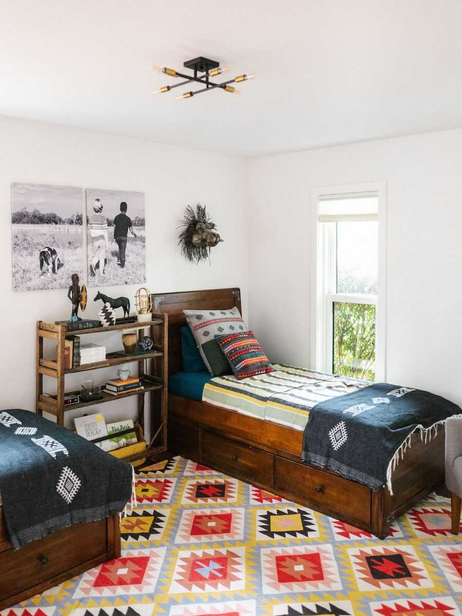 При организации небольшой комнаты для братьев и сестер разных возрастов, также не забудьте позаботиться обо всех потребностях подростка. Приобретите односпальную кровать с контейнером для постельных принадлежностей — он займет меньше места, и в то же время облегчит хранение наволочек или подушек.
