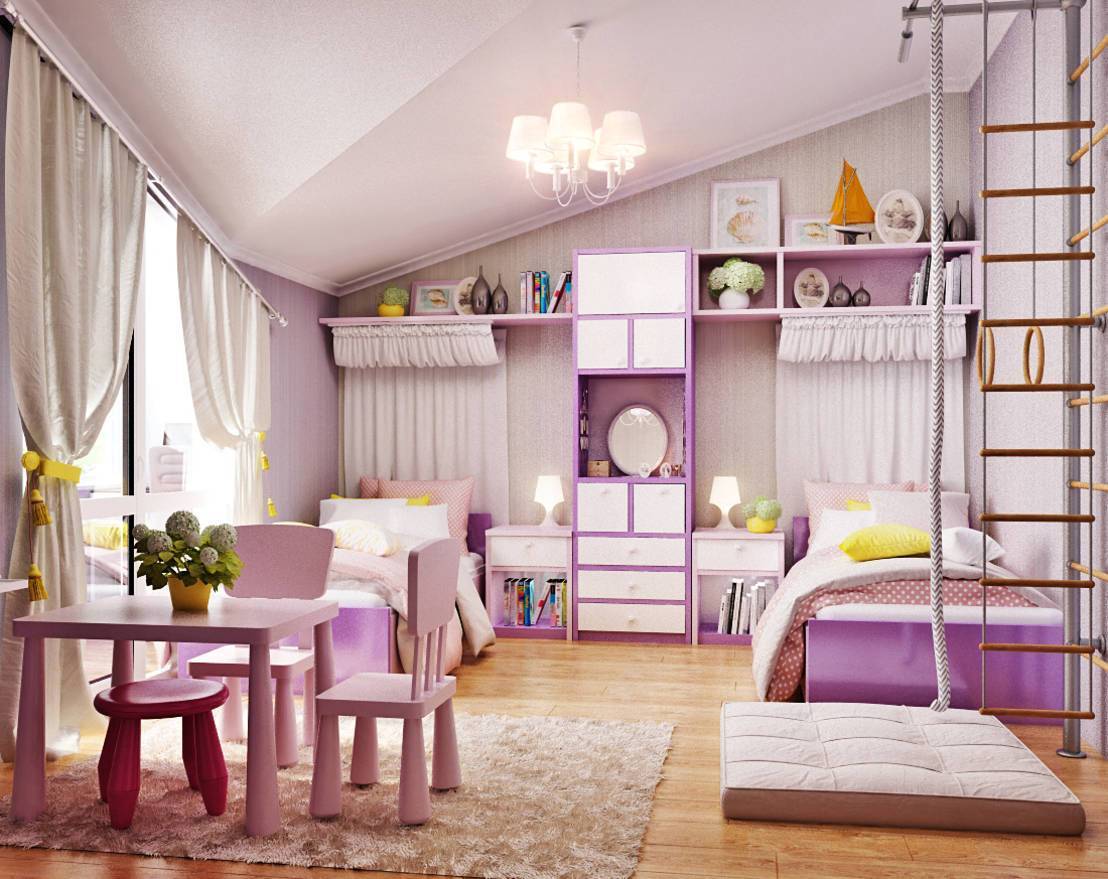 Дизайн интерьера детской комнаты для двух девочек