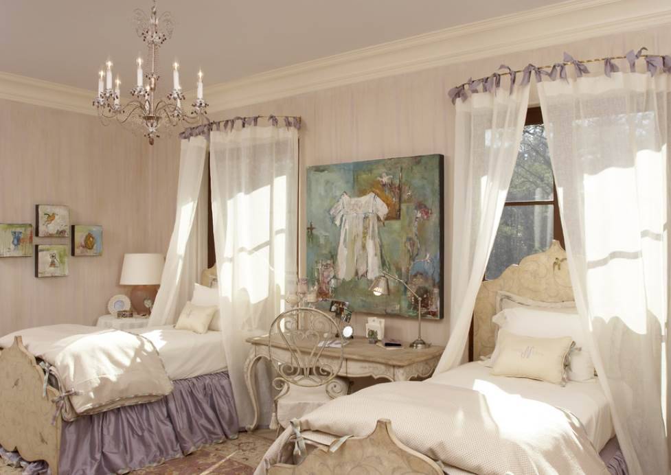 Ещё один полезный совет: персонализируйте кровати каждой девочки. Так, над каждой кроватью можно повесить фотографию маленькой хозяйки или табличку с именем. Не помешает также и оставить возле кровати красивые полки, на которых разложены любимые вещи каждой девочки.