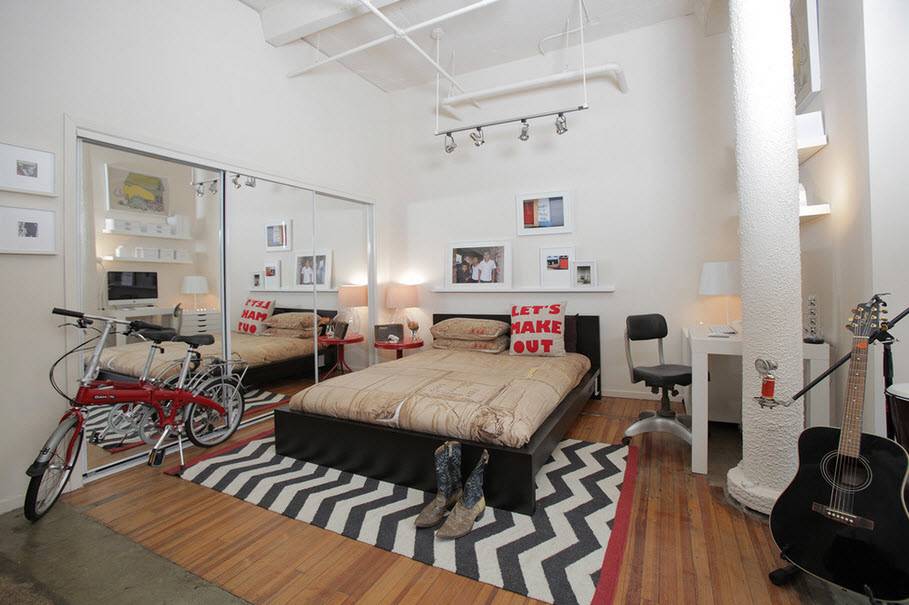 Подходит для подростков постарше (16-17 лет), которые не приемлют скучных решений, отличным решением станет неформальный и дерзкий стиль лофт, обладающий брутальной направленностью. В подобном интерьере уместно наличие индустриальных элементов, комбинация старинных и современных мебельных предметов. Отделка может быть выполнена из оригинальных облицовочных материалов в холодной цветовой палитре.