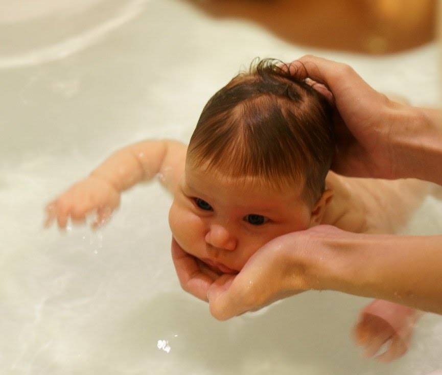 (в конце статьи много видео инструкций о том какие упражнения можно делать с новорожденным в ванне)