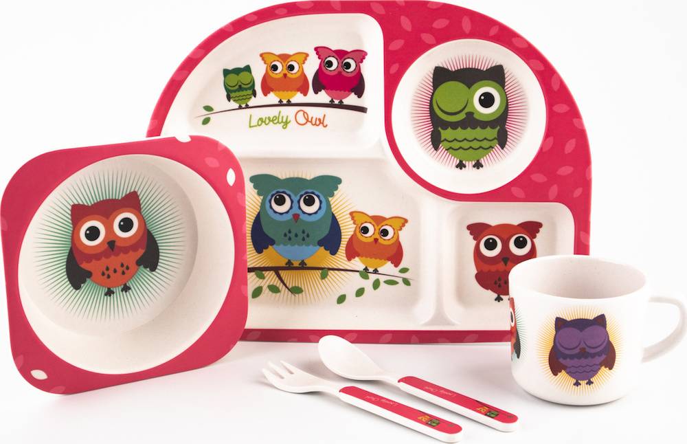 - Тарелка. Вашему карапузу идеально подойдёт посуда из термостойкого пластика (предназначенного для пищи). Отдавайте предпочтение красочным тарелочкам с изображением животных, машинок или персонажей из мультфильмов. На первое время лучше приобретать посуду с присоской, так будет больше шансов, что она не окажется на полу. Также пользуются популярностью тарелки, имеющие наклонное дно. Ведь, такая особенность посуды позволит ребёнку с лёгкостью справляться с зачерпыванием еды.