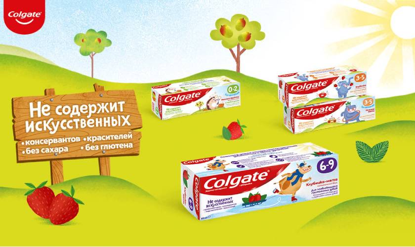 Эта паста не содержит глютена, парабенов, искусственных подсластителей и красителей, имеет вид прозрачного геля с мятно-клубничным вкусом и защищает зубы в период смены молочных на постоянные.