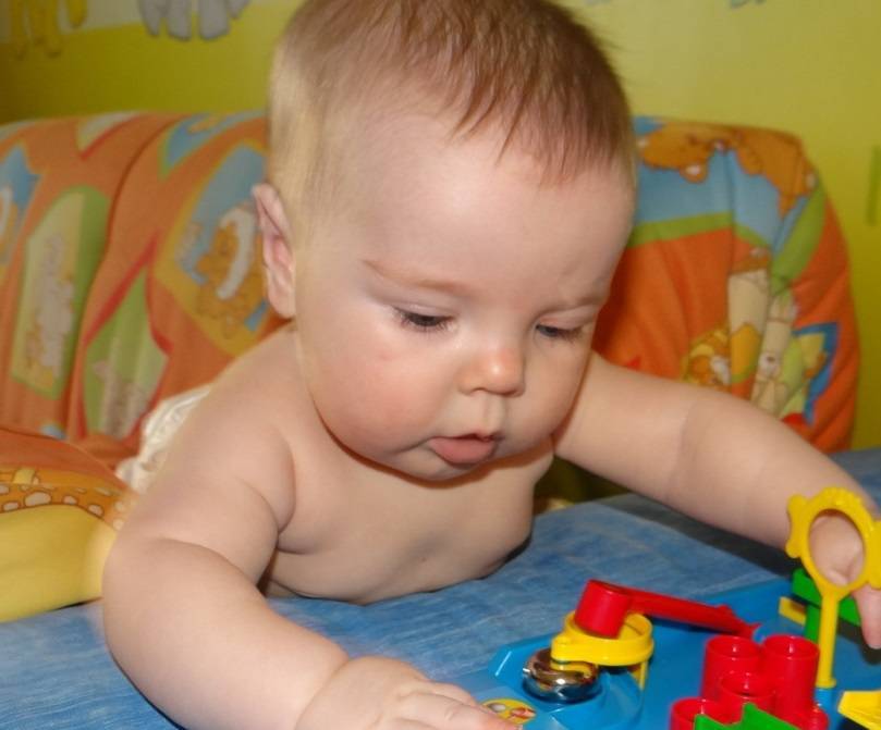 - 3-6 месяцев. Период совпадает с временем прорезывания зубов. Дети целенаправленно тянут руки ко рту, пытаясь унять зуд. Это первые полностью осознанные движения. В это же время ребенок начинает следить за окружающими. Он уверенно направляет руки к предметам при наличии интереса. Это важный процесс, поскольку раннее развитие моторики до 8 месяцев способствует формированию психики.