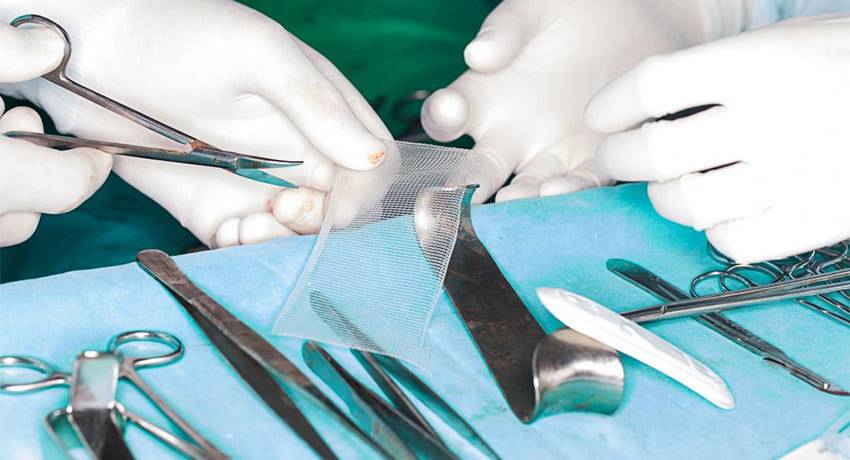 При грыже крупных размеров проводят герниопластику (грыжесечение) – грыжу удаляют хирургическим путем. Во время операции сначала вправляют грыжу, затем на грыжевые ворота ставят синтетическую сетку по принципу заплатки, которая со временем врастает в ткани организма и предупреждает повторное появление выпячивания.