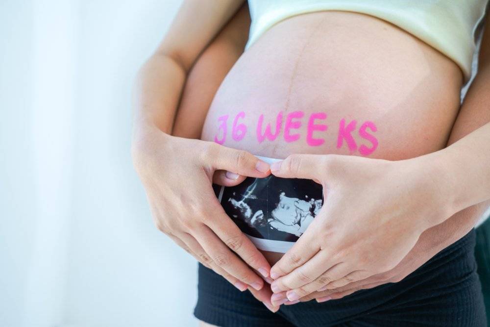 Хотите представить себе размеры матки с малышом внутри на этом сроке? Они вполне соответствуют спелому арбузу. Кроха достигает в среднем 45 см и 2,5 кг и выглядит, как оформленный, хотя и немного худенький младенец. У него круглые щечки с комочками Биша, кожа гладкая и покрыта первородной смазкой, ноготочки длиннее кончиков пальцев, ушки уже плотные, есть брови, ресницы и волосы на голове. А вот лануго, пушок на теле, уже выпал или вот-вот выпадет.