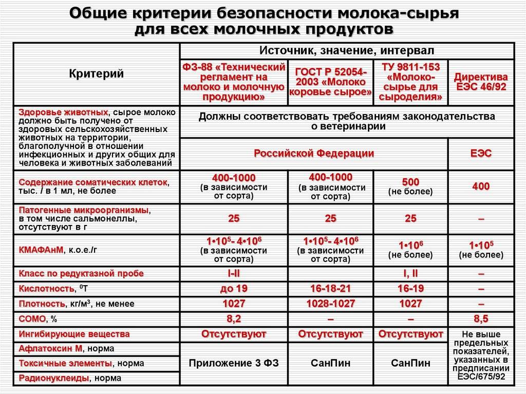 С точки зрения актуальных правил приемки молока, основными физико-химическими показателями, способных сказываться на качестве, считаются: