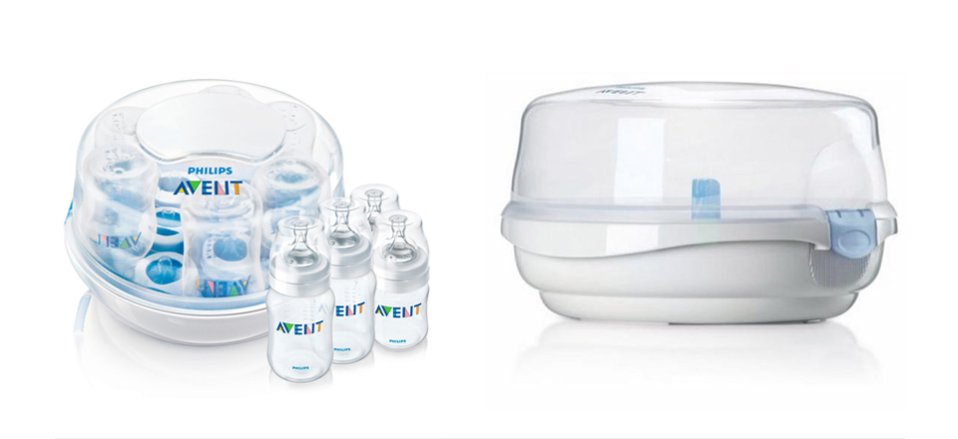 - Также обработать посуду паром можно при помощи стерилизатора для бутылочек, который предназначен для СВЧ-печей. Он представляет собой герметичный контейнер, в который перед использованием необходимо залить достаточное количество воды для образования пара. Он имеет меньшую стоимость, но и меньшую вместительность.