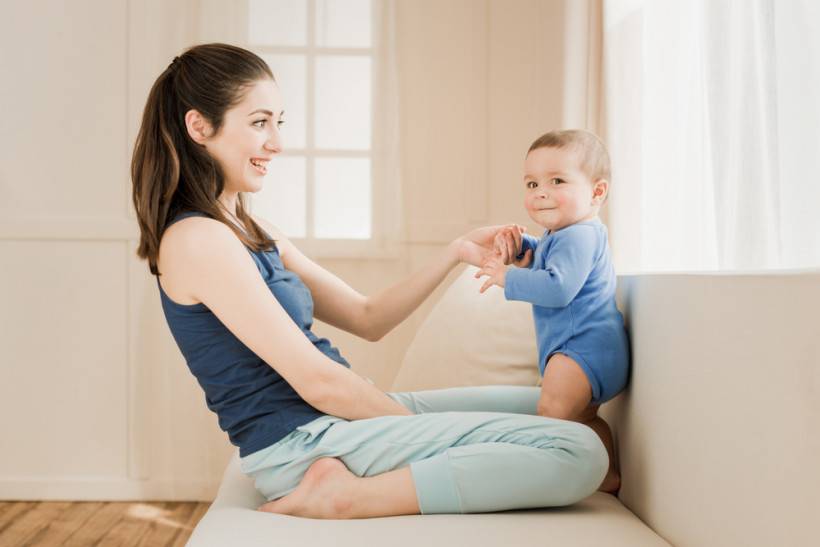 Что вы можете сделать: помогите ребенку держать баланс с помощью игры: посидите с малышом на полу и помогите ему встать. Затем подсчитайте, как долго он может стоять, и похвалите за это.