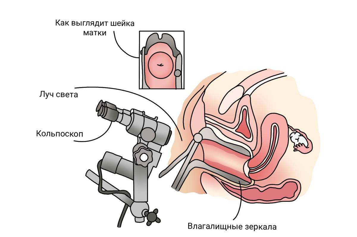 Устройство — кольпоскоп — бывает разных размеров и форм. Но суть одна и та же. Он светит на влагалище фонариком с одной стороны, с другой — даёт увеличенное во много раз изображение внутренних половых органов. Во время исследования подробно изучают клетки слизистой, ищут ненормальные. Их расположение и размер помогают врачу понять, нужно пациентке лечение или нет. Если возникли трудности — берёт биопсию, отщипывая кусочек слизистой для дополнительного исследования.