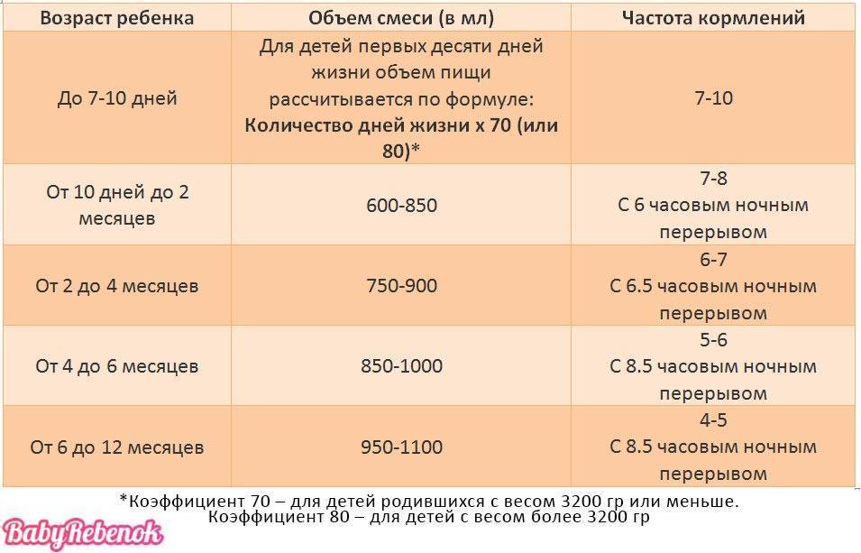 - Внимательно изучайте информацию на упаковке. Там должно быть указана не только суточная доза и инструкцию по приготовлению. Ищите специальную таблицу, в которой можно найти данные по весу, возрасту малыша и соответствующие этим данным нормы питания.