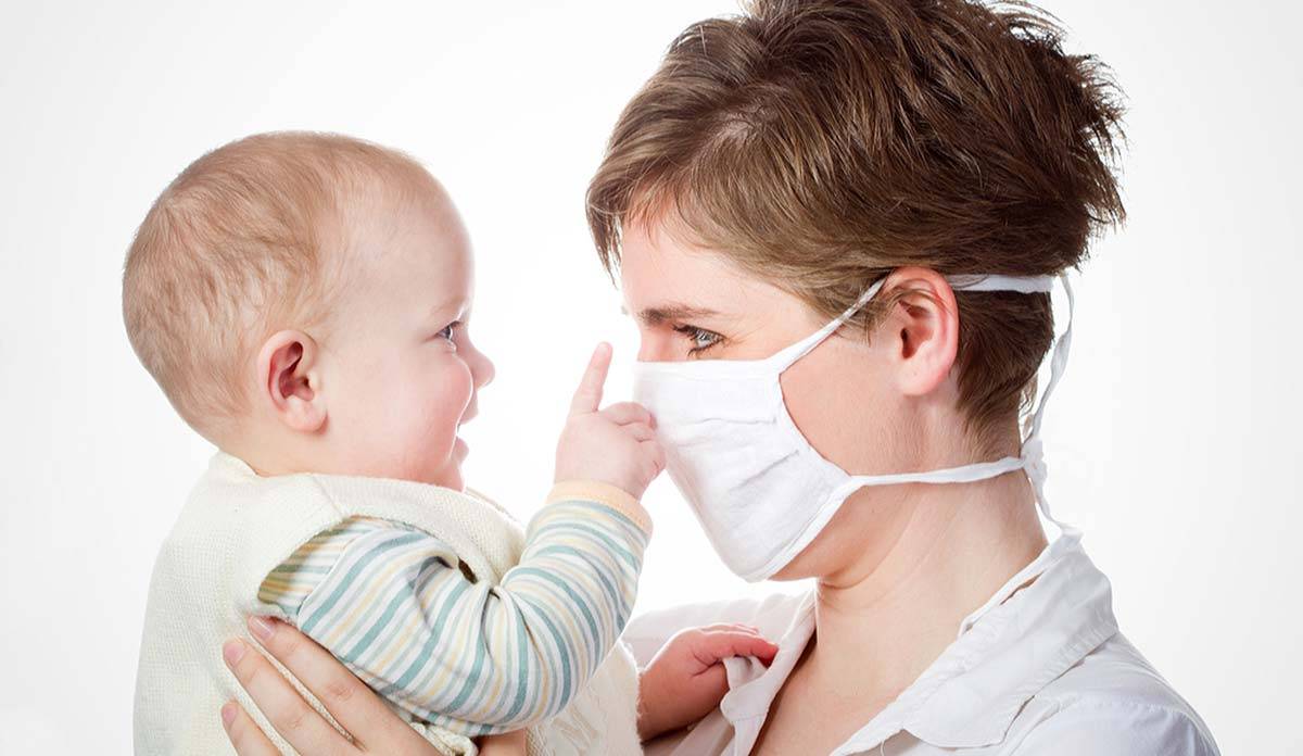 В том случае, если мать ребенка заразилась инфекцией, которая передается воздушно-капельным путем, например, ОРВИ, ей следует использовать одноразовые маски для лица.