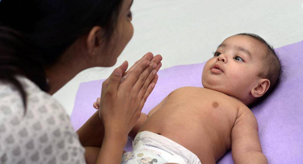 Эффективнее проводить сеанс в форме игры. Трехмесячным детям сложно воспринимать речь