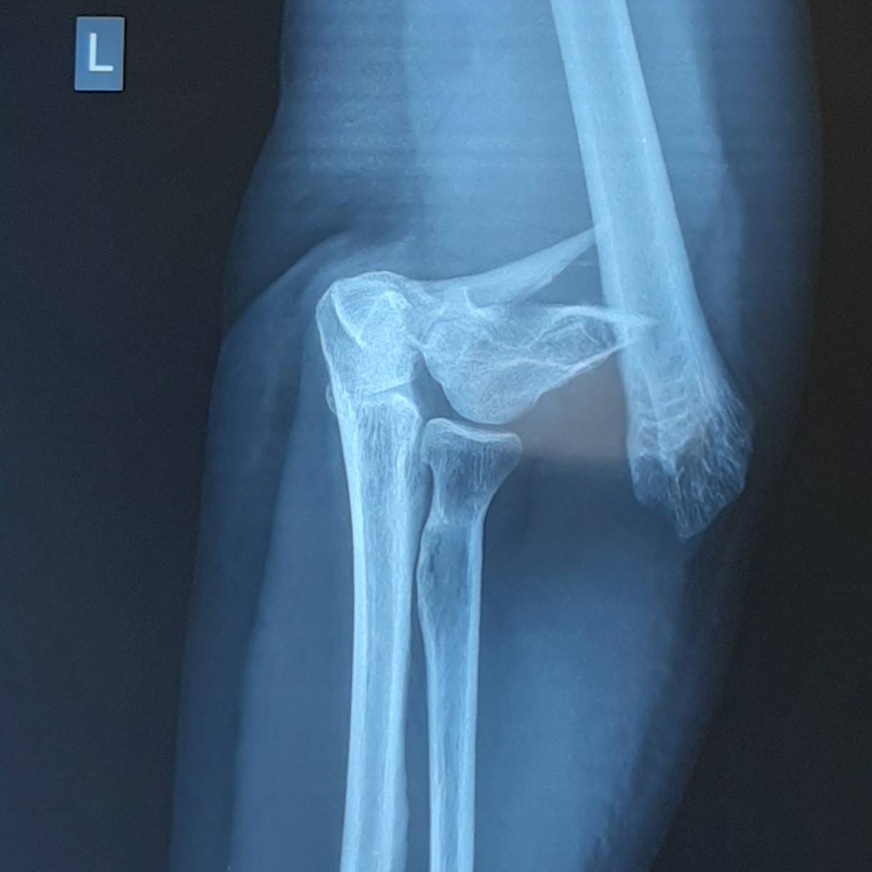 В области верхней трети локтевой кости наиболее распространен перелом локтевого отростка. Этот перелом может быть изолированным или сочетаться с вывихом головки лучевой кости. Такое повреждение в медицинской литературе называют перломо-вывих Монтеджи. При изолированном переломе локтевого отростка под воздействием тяги трицепса прикрепляющейся к нему значительно смещает отломки. Консервативными методами в гипсе подобные смещения устранить не представляется возможным, поэтому лечение чаще всего хирургическое. Целью операции является точное восстановление суставной поверхности локтевой кости, а также стабильная фиксация отломков во время реабилитации после операции до сращения перелома.
