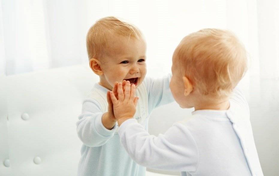 Даже, если ребенка часто подносить к зеркалу, то до шести месяцев невозможно понять, узнает малыш в нем себя или просто реагирует на отражающиеся движения.