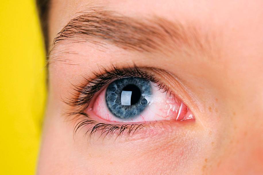 - Осмотреть покрасневший глаз, бережно оттягивая веки.