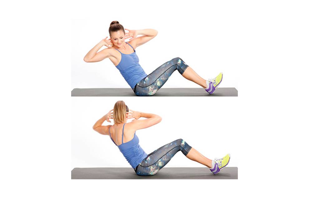 - Затем начните интенсивные скручивания, поочередно меняя стороны.