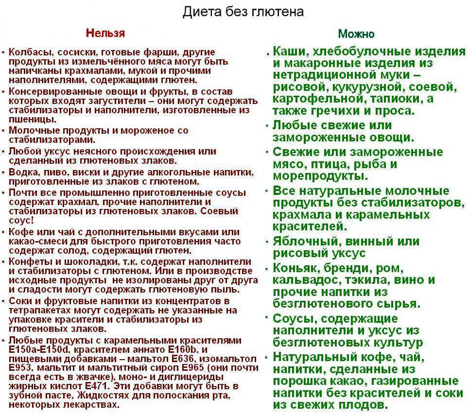 Запрещены к употреблению не только «четверка» глютенсодержащих злаков, но и колбасы, соусы, сладости, фабричные соки. Кроме того, нельзя есть крахмал, майонез, глазированные сырки, полуфабрикаты и макароны.