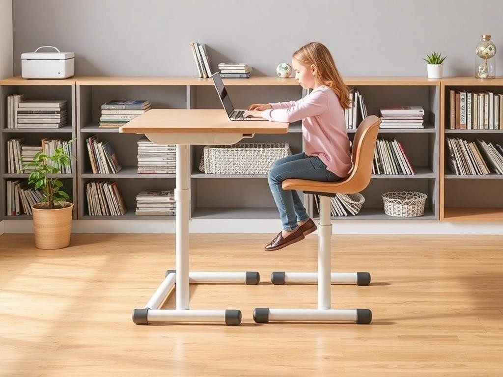 Сделайте рутину понятной: перед уроком проверять высоту и освещение, после работы — убирать вещи. Можно наклеить простую табличку с контрольными точками: глаза на уровне, локти на столе, стопы на полу. Это простая, но эффективная привычка.