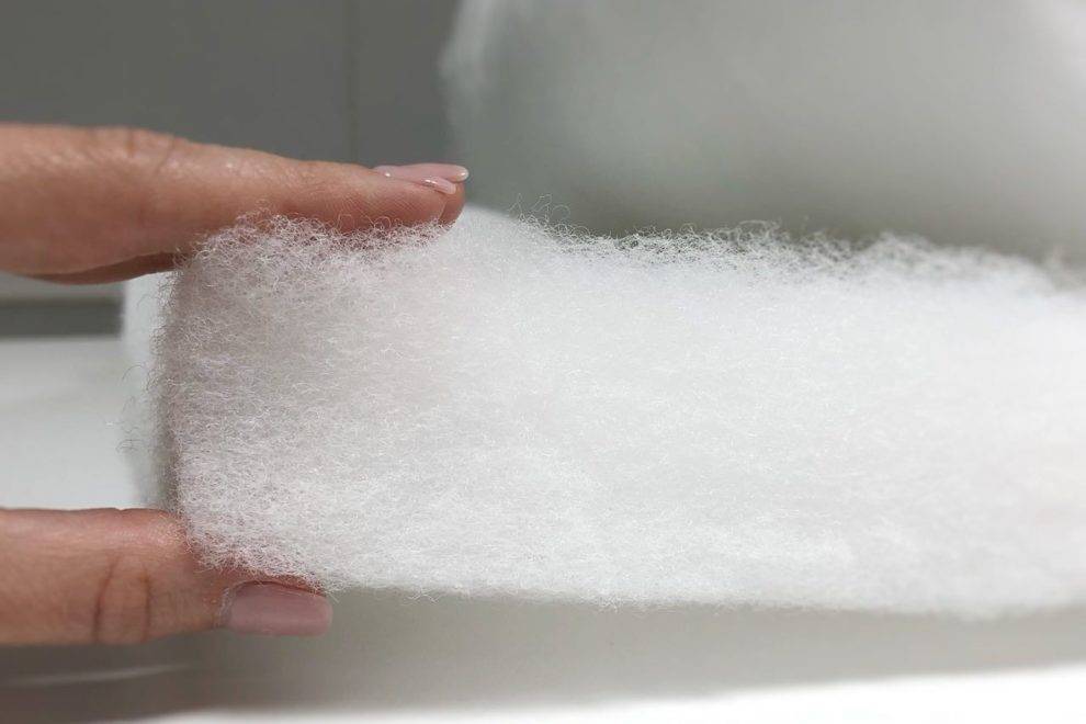 - Полиэфир. Наполнитель, который, по сути, представляет собой синтетическую вату. В отличие от традиционной хлопковой, он более упругий и гораздо хуже впитывает влагу. Главное достоинство этого варианта – низкая стоимость.