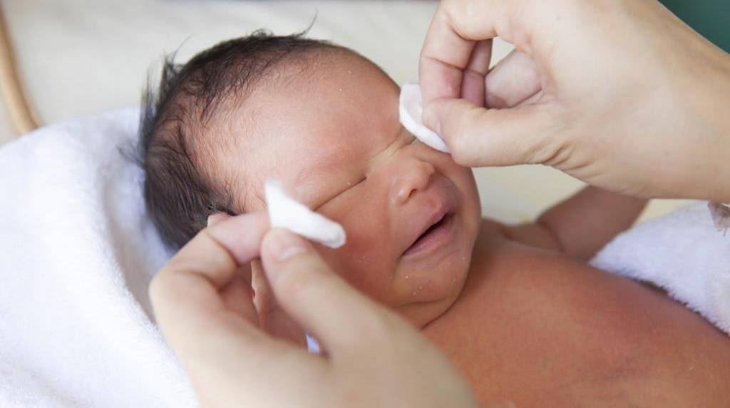 У малыша могут быть не до конца сформированы или закупорены слезные протоки. Поэтому глаза могут гноиться и слипаться. Эта ситуация может сохраниться первые пару месяцев жизни.
