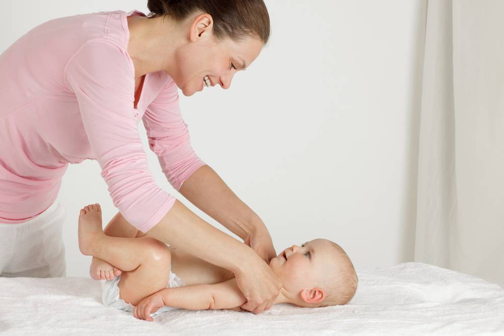 Малыш укладывается на ровную поверхность, мама помогает выполнить движения по 3-5 раз. По окончанию выполняется массаж, когда массируется все тело, кроме области сердца.