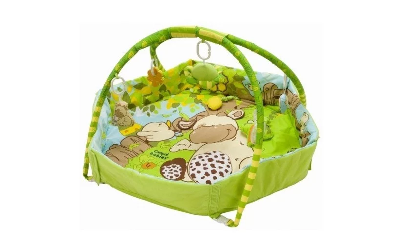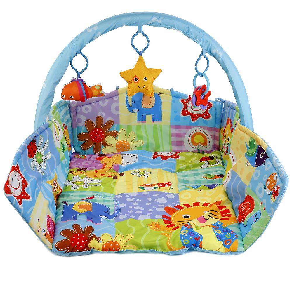 Идеальный вариант для новорожденных и малышей с первых месяцев жизни. В комплект входят погремушки, шуршащие элементы и симпатичные мягкие игрушки. В процессе игры грудничок учится держать голову, смотреть вверх, а затем и ползать. Развивается мелкая моторика, хватательный рефлекс, улучшается координация движений. Высокие съемные бортики создают подобие манежа. В комплекте имеется зеркало из безопасного материала.