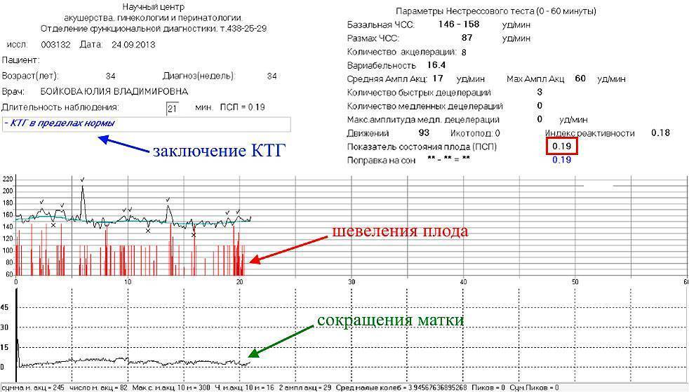 При расшифровке итоговых данных КТГ используют несколько методов, но чаще всего оценивают параметры исследования в баллах либо рассчитывают ПСП – показатель состояния плода.