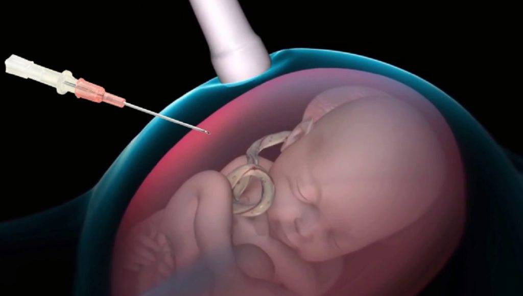 - Амниоцентез — ещё одно исследование, которое проводится после 15 гестационной недели. Эта процедура включает в себя взятие образца амниотической жидкости путём вставки иглы через живот, управляемой ультразвуковой визуализацией.