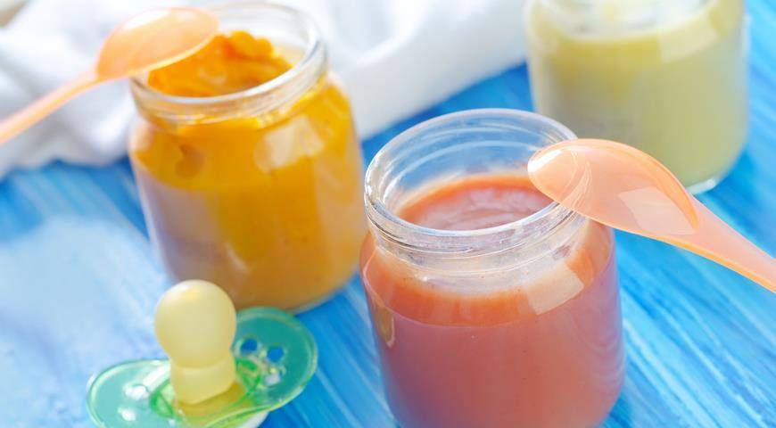 Кроме новых продуктов, ребенок к 9-месячному возрасту должен познакомиться с пюре из фруктов и овощей, кашами. Можно покупать готовые пюре в банках. Они удобны в использовании, имеют разные вкусы и рассчитаны на хранение в холодильнике в течение суток.