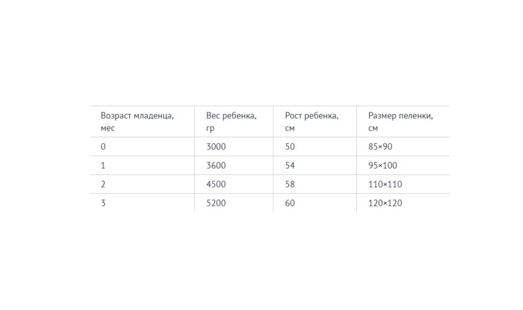 Чтобы сшить пеленку самим нужно знать размеры пеленок для новорожденного: