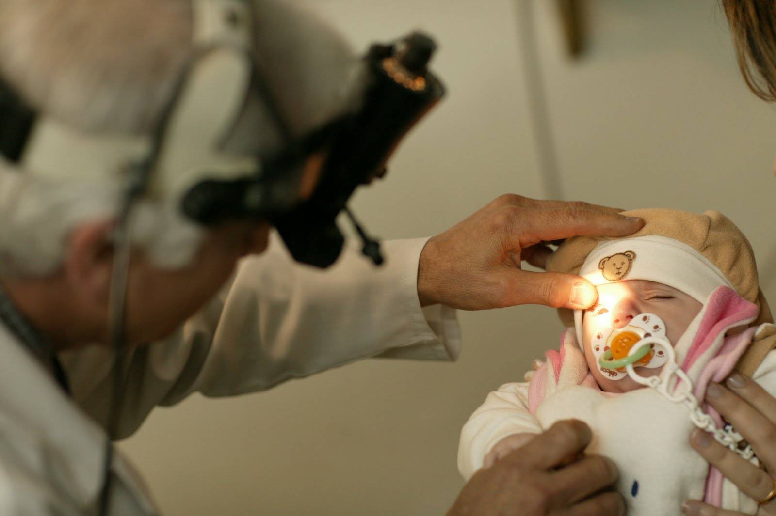 Осмотр глаз младенца офтальмологом