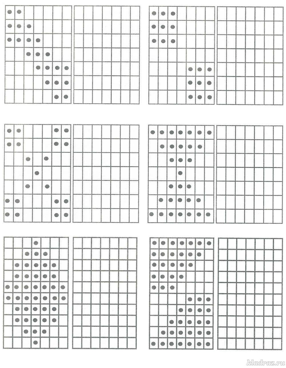 Нарисуй рядом по клеточкам точно такие же узоры.