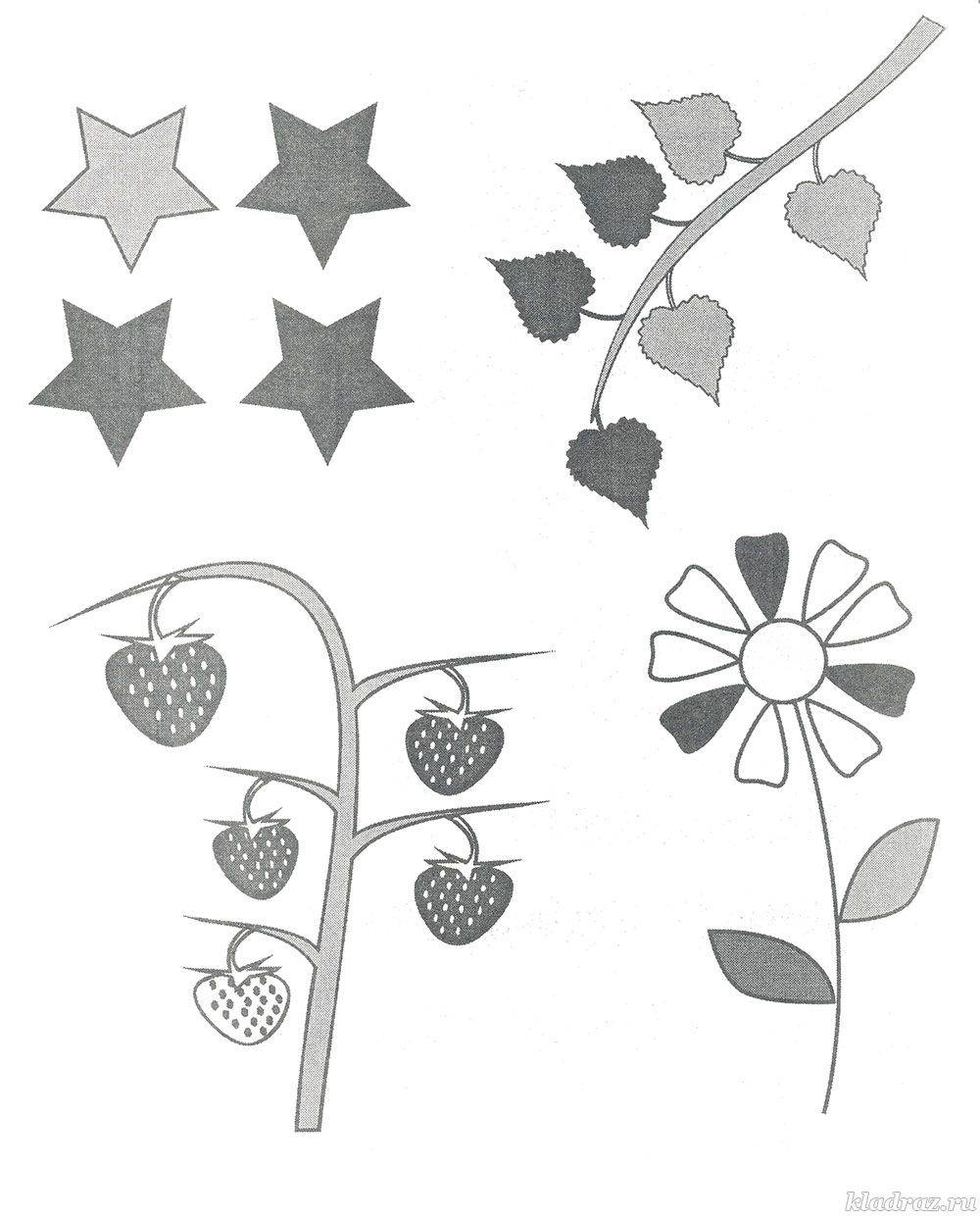 Эта аппликация похожа на вышеописанную, но несколько сложнее. Детали приклеиваются в определенной последовательности и с перекрытием.