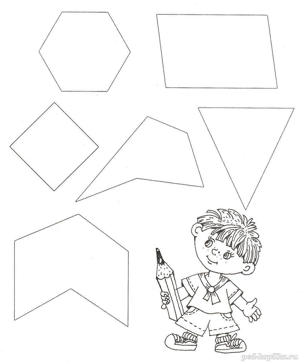 Раскрась фигуры так, чтобы пятиугольник лежал на прямоугольнике.