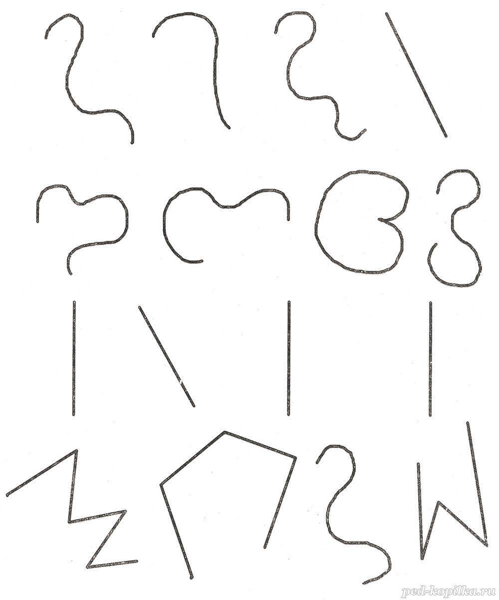 Продолжи ломаные линии так, чтобы получились различные предметы. Назови, что у тебя получилось.