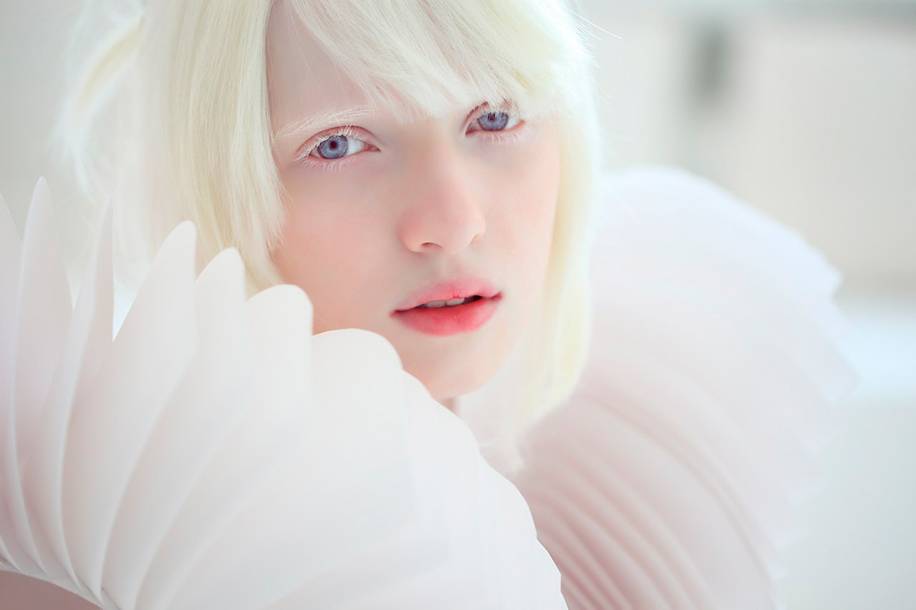 5. Красный (или розоватый) цвет получается в результате альбинизма — врожденного отсутствия пигментации (в том числе в волосах и коже). В этом случае оттенок радужки определяется кровеносными сосудами в ней. Иногда бывает и так, что красный, смешиваясь с синим, дает фиолетовый тон.