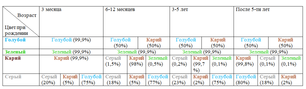 Изменение цвета глаз от рождения до формирования окончательного цвета: кликните, чтобы увеличить