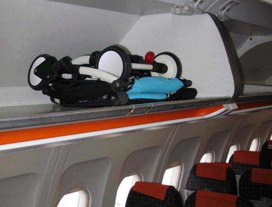 Небольшие складные коляски можно проносить на борт в сложенном виде в качестве ручной клади. Весь перелет они находятся на багажной полке. Раскладываются только после выхода из самолета.