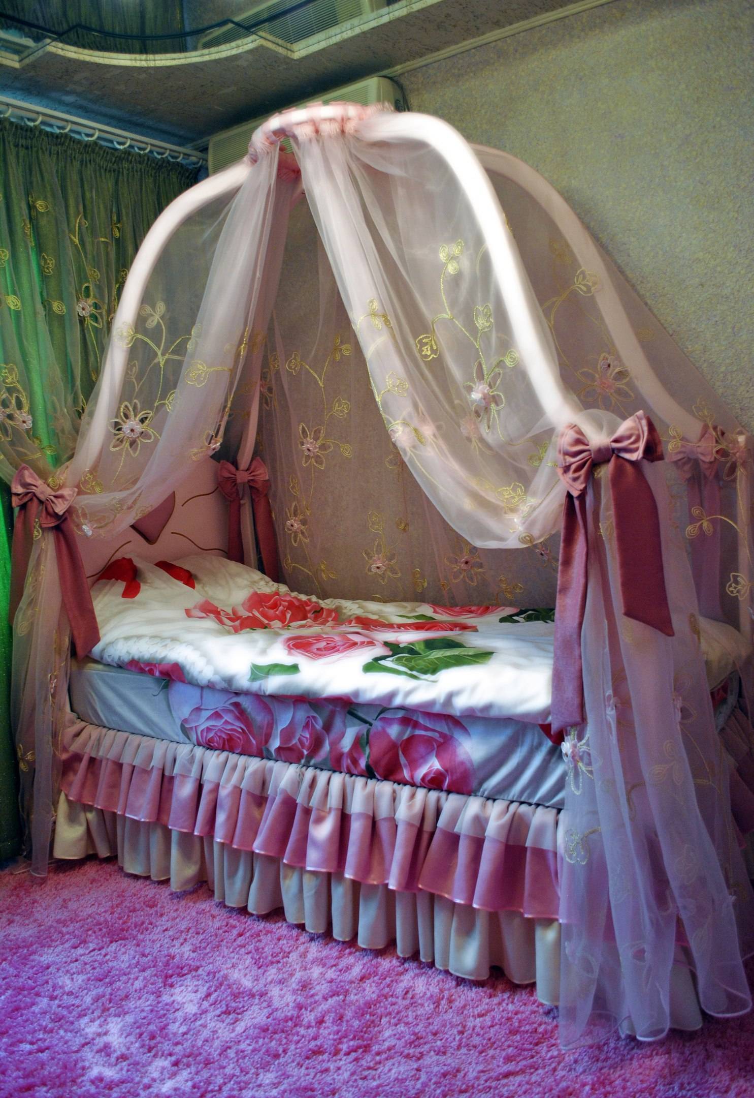 Балдахин поможет визуально изолировать зону сна от общего пространства. Ваша принцесса будет чувствовать себе невероятно уединенно на такой кровати.