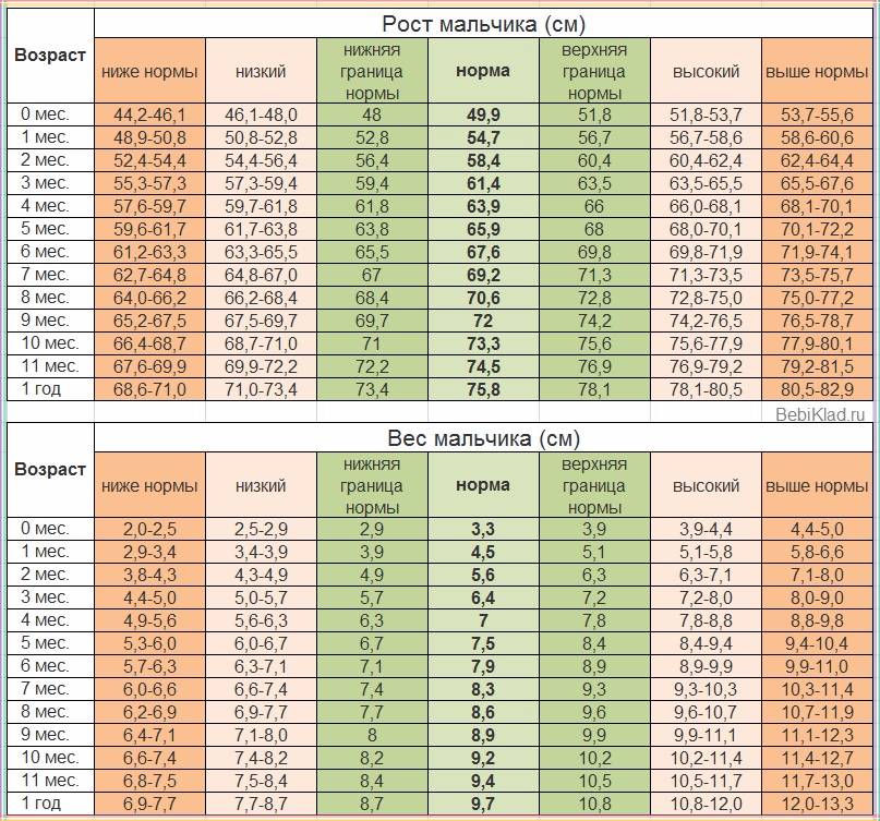 Вес и рост ребёнка от 0 до 1 года