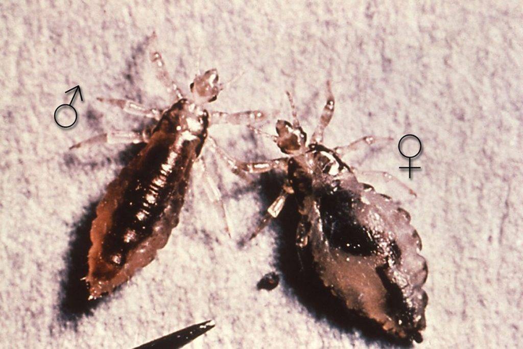 - Лобковый педикулез – лобковые вши (плошицы) передаются при половом контакте, в общественных раздевалках, банях, спортивных залах, бассейнах, паразитируют на лобке, в паху, вокруг ануса, подмышечных впадинах, бедрах, бровях. Лечение почти всегда осуществляют препаратми на основе пиретрина. Места укусов бреют, смазывают серной, дегтярной, 5% борной или 10% ртутной мазью, с ресниц паразитов снимают пальцами. Лобковому педикулезу дети почти не подвержены.