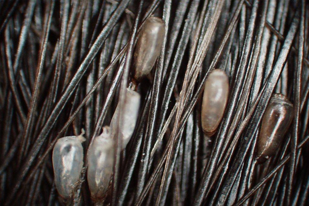 Осмотрите вычесанные волосы. Ближе к их корню можно увидеть гнид. Гнида, как маленькая прозрачная бусинка, крепко держится на волосе. Ее сложно отделить. А при раздавливании она издает характерный треск.